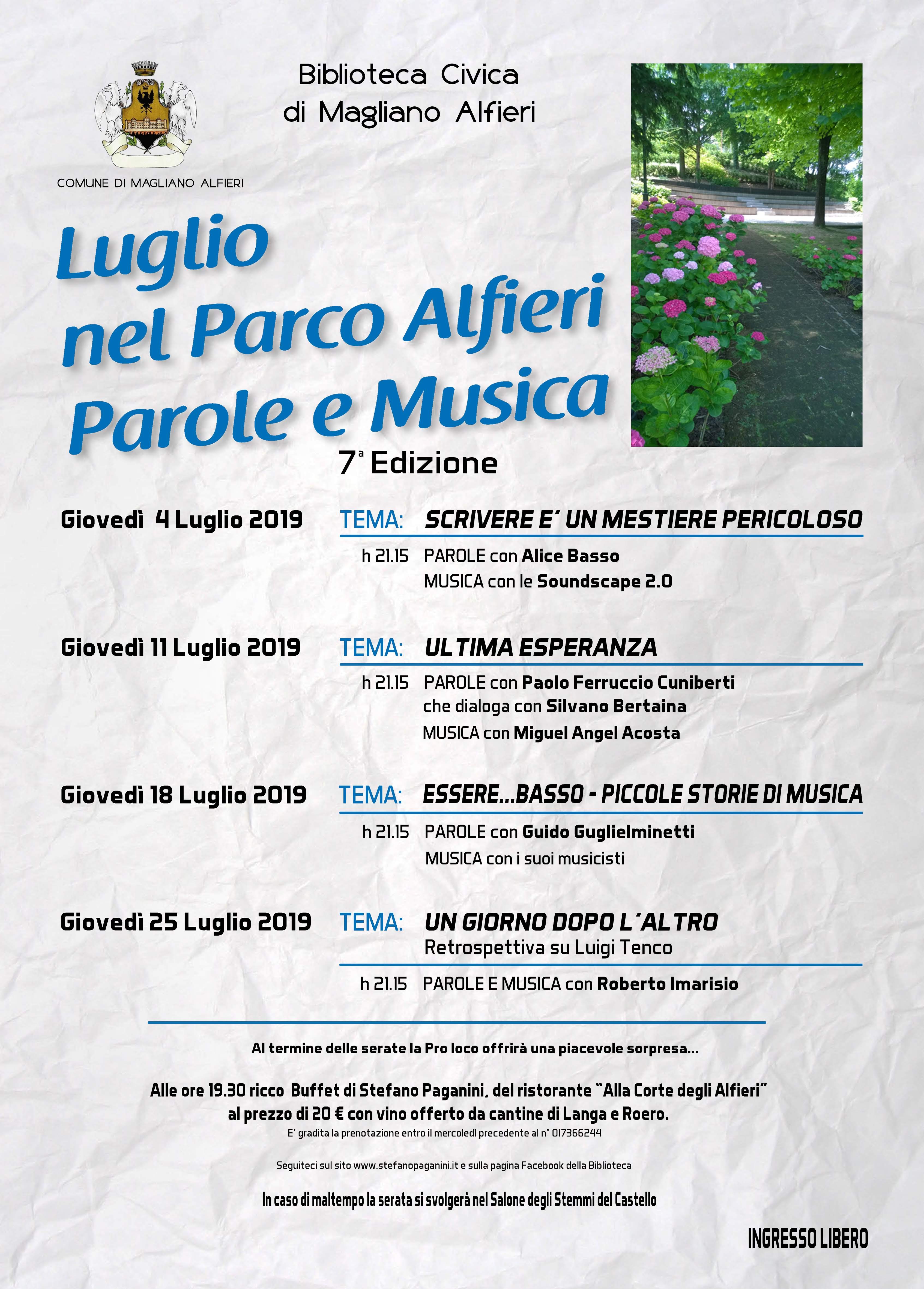 Luglio nel Parco Alfieri. Parole e musica. 7° Edizione
