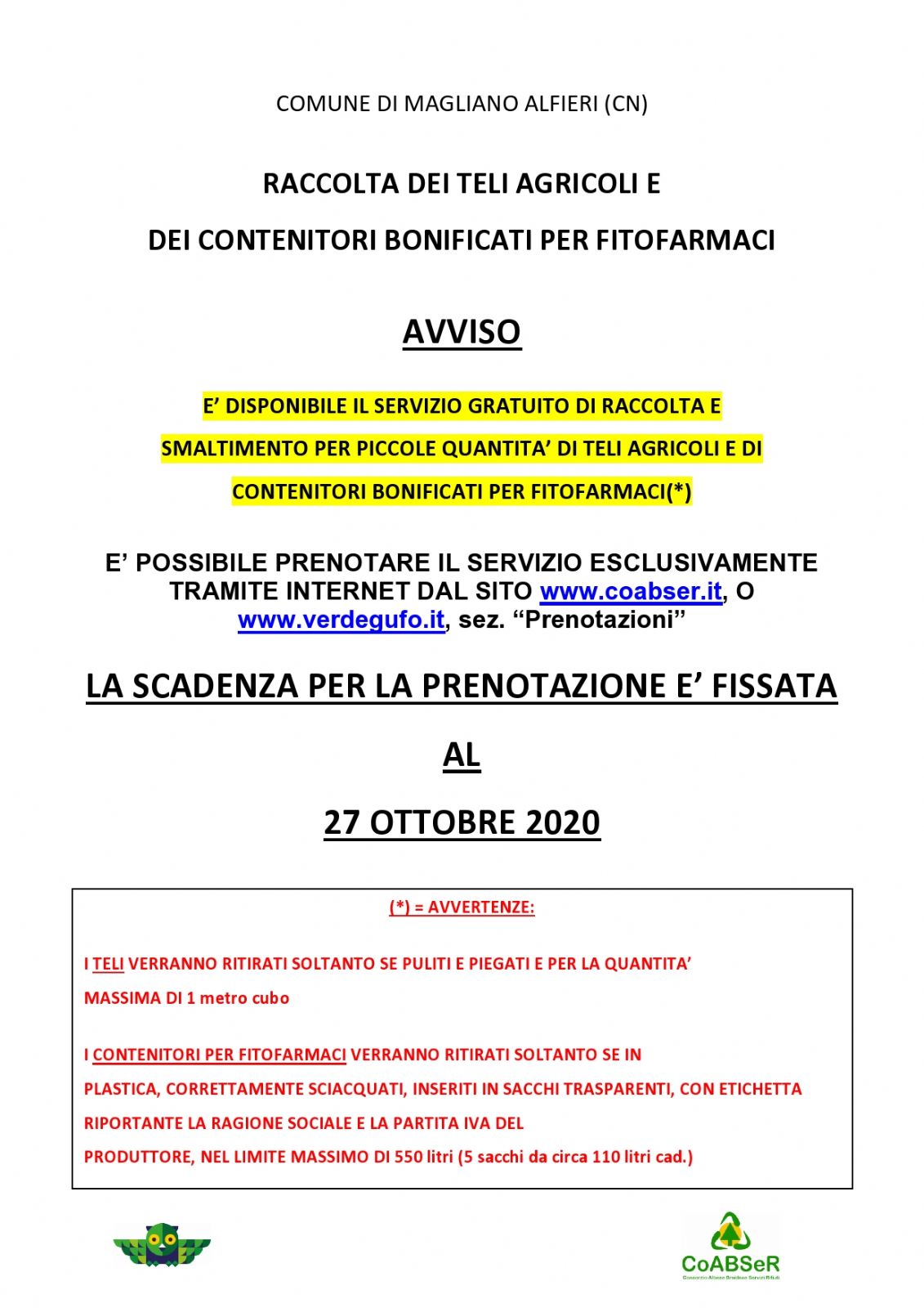 E’ DISPONIBILE IL SERVIZIO GRATUITO DI RACCOLTA E