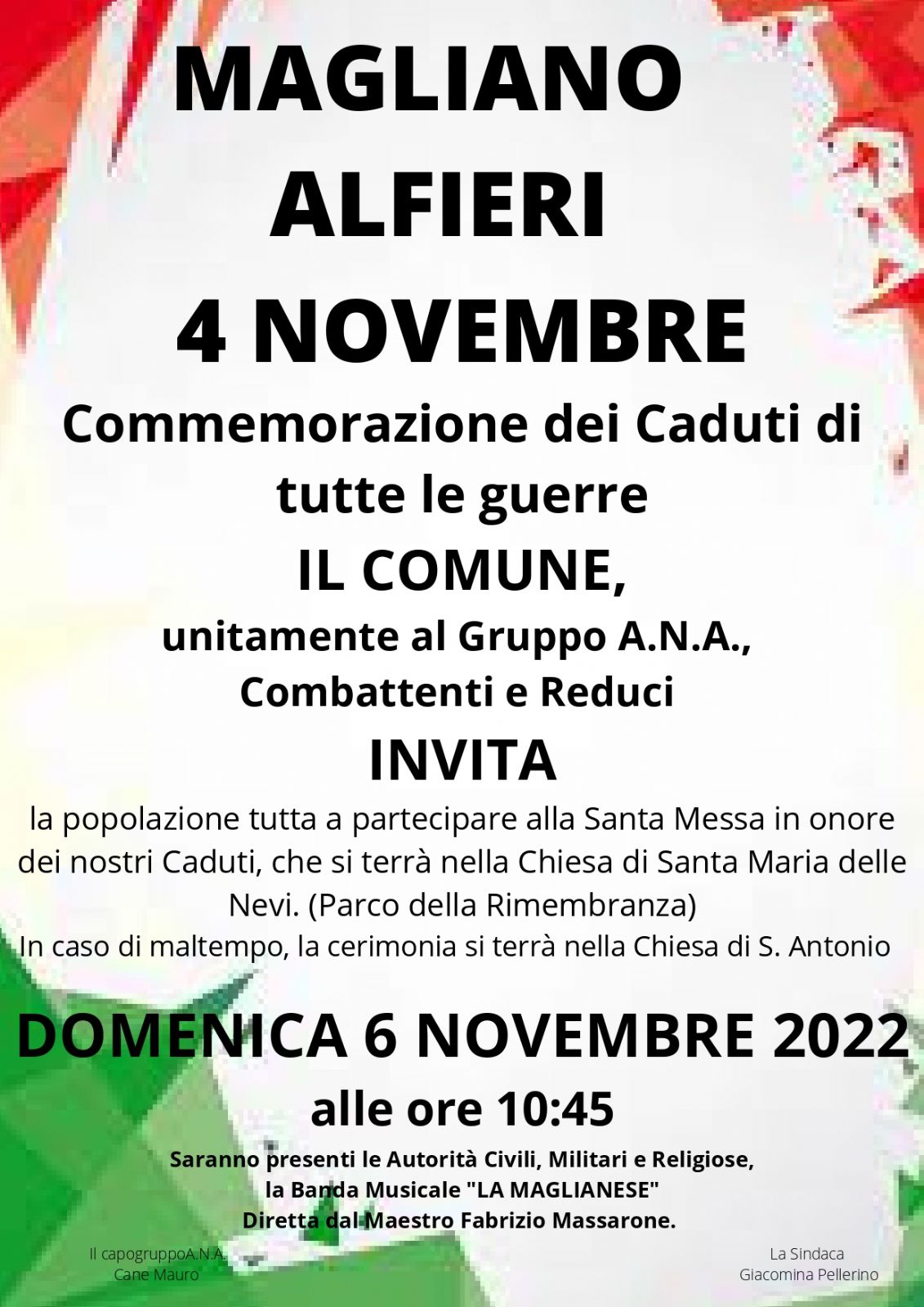 IL COMUNE, unitamente al Gruppo A.N.A., Combattenti e Reduci INVITA la popolazione tutta a partecipare alla Santa Messa in onore dei Caduti, che si terrà nella Chiesa di Santa Maria delle Nevi (Parco della Rimembranza).