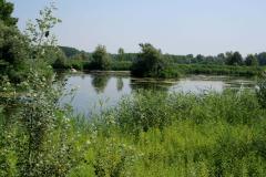 Attraversiamo una zona di coltivi: campi di cereali, frutteti e, più avanti, pioppeti; qua e là vegetano cespugli di biancospino o di melo cotogno e rade farnie, ultimo ricordo di una preistorica foresta che accompagnava il corso del fiume Tanaro. Raggiungiamo il cavalcavia per superare l’autostrada Asti-Cuneo, poi con un giro di 360° passiamo sotto al ponte e proseguiamo mantenendo sempre la destra. Giunti a un bivio a Y continuiamo sul ramo sinistro e poco dopo, ancora a sinistra, camminiamo in un terreno erboso e attraversando un pioppeto fiancheggiamo un piccolo lago privato. Di fronte abbiamo l’Oasi Canapali.