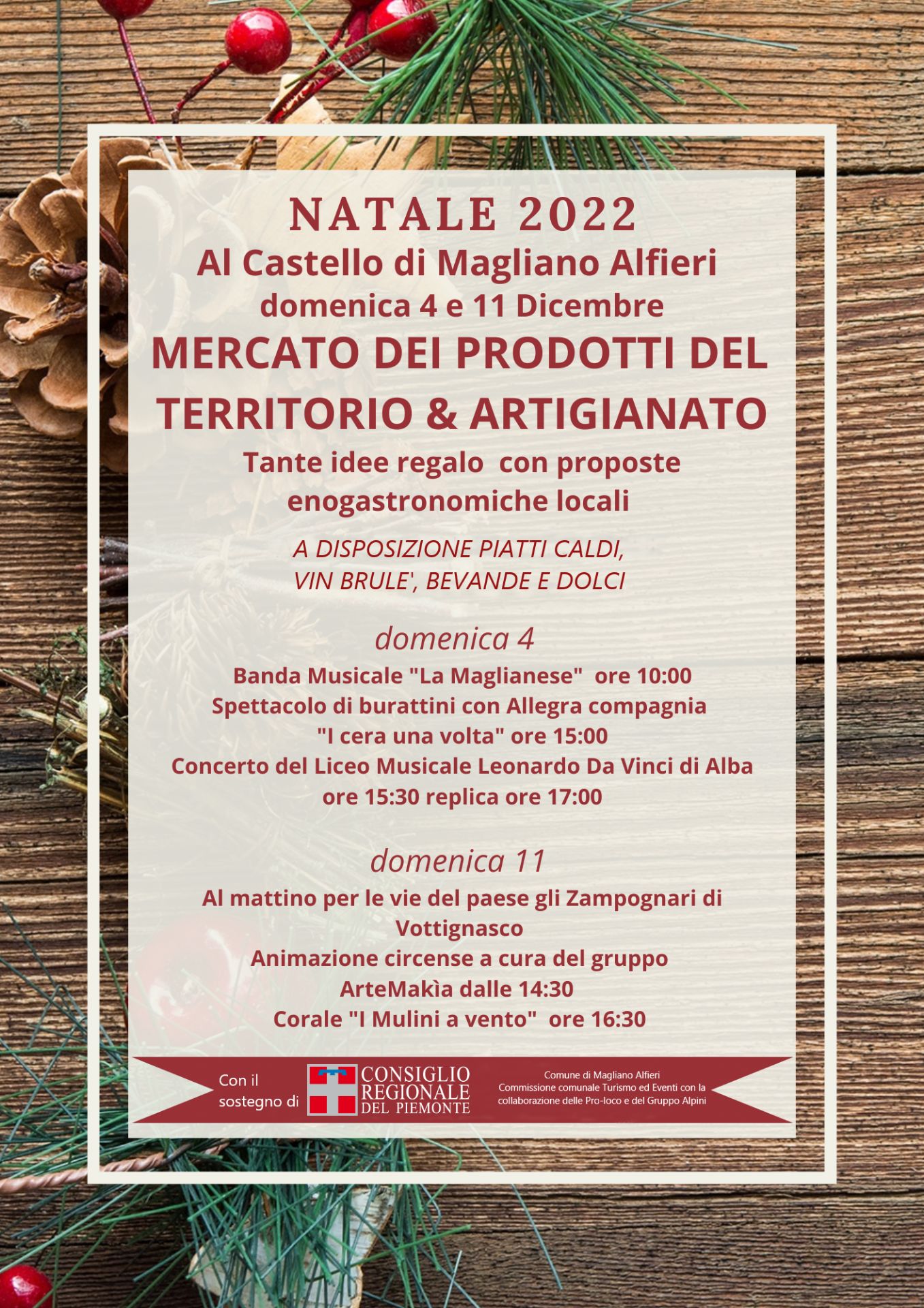 Domenica 11 gli zampognari di Vottignasco al mattino; animazione circense con ArteMakìa e concerto della Corale I Mulini a Vento il pomeriggio.