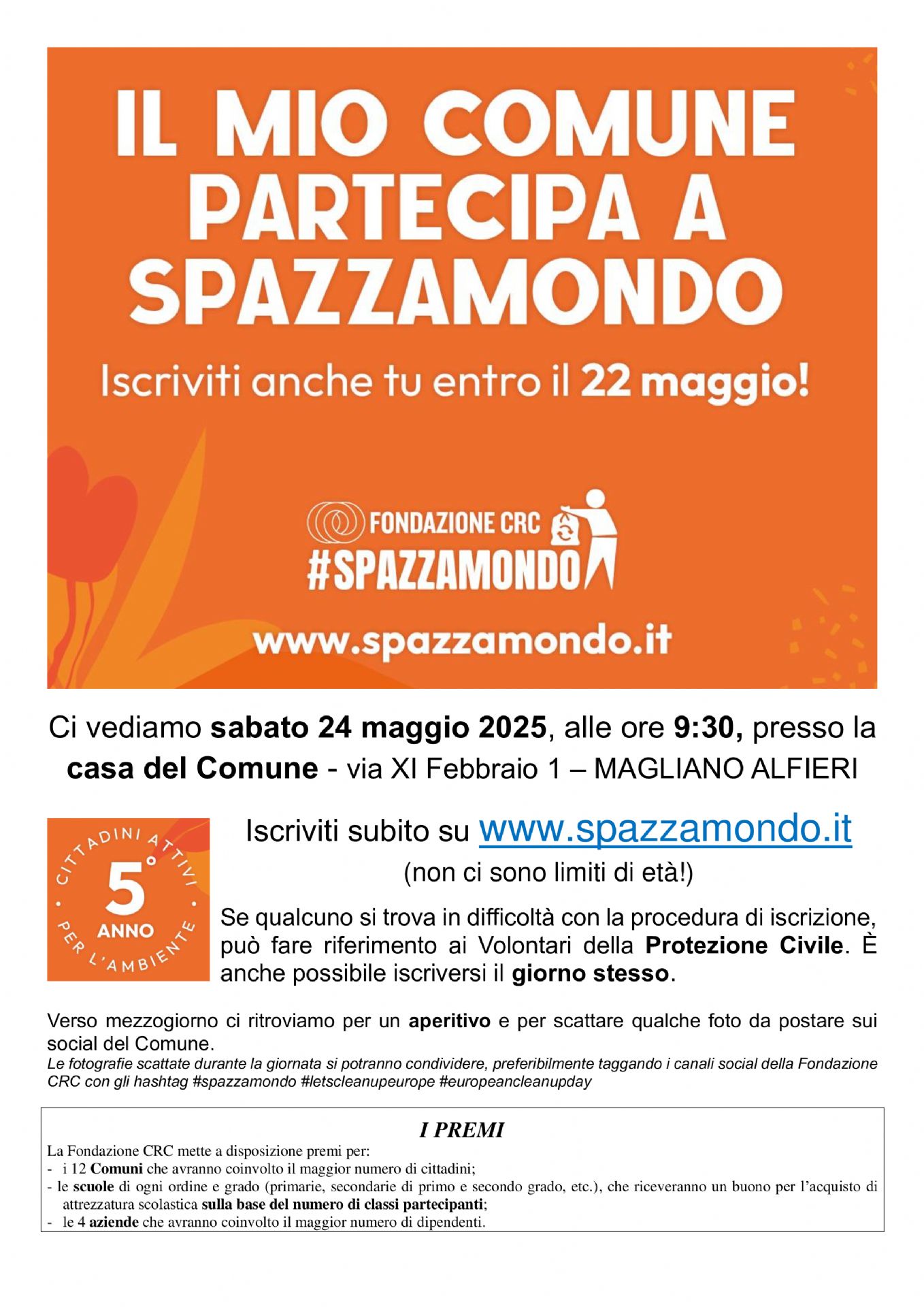 Ci vediamo sabato 24 maggio 2025, alle ore 9:30, presso la casa del Comune - via XI Febbraio 1 – MAGLIANO ALFIERI.