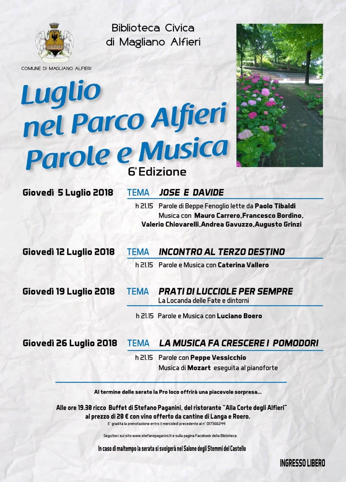 Parole e musica nel parco Alfieri come da allegato volantino